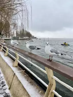 As soon as I entered the park, I was attracted by the snow-covered trees and the flocks of red-billed gulls beside the lake⛄️❄️
