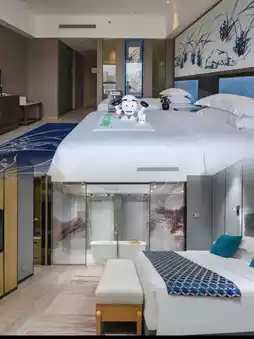 As soon as you enter the room, you can feel its spacious and bright space and comfortable atmosphere. The bedding is soft and comfortable, allowing you to get a good rest during your trip. The room is well-equipped with high-speed Wi-Fi, smart TV, and more to meet all your needs.
