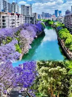 Strolling along the middle road of the churchyard, a kilometer-long street is decorated with jacarandas into a purple fairytale world, the breeze blows, the petals fall like snow, sprinkle a romantic rain of purple flowers, and every step is like stepping in a spring poem line.