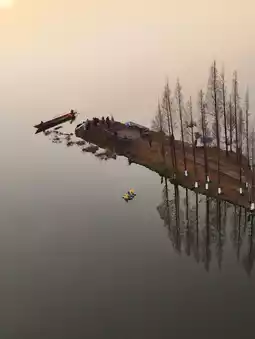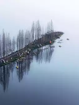 👉I don't know when it started, but a long, narrow embankment covered with metasequoia trees on the west bank of Dianchi Lake in Kunming has become a popular spot, known as the "Kunming Sky Mirror." It stretches into the lake within the Gangouwei Wetland Park.