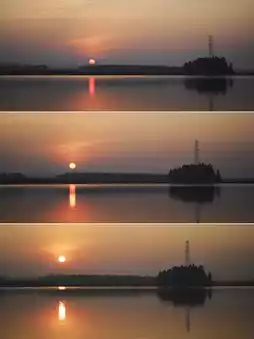 👉I chose a cloudless morning, hoping to see both the sunrise and the blue sky and white clouds reflected in the water later, making the embankment look like it was suspended in the sky. Unfortunately, the weather forecast was inaccurate, and there wasn't a single cloud in sight.