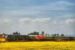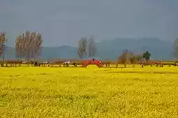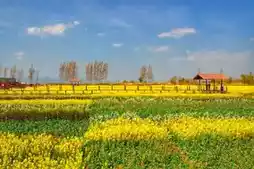 The second is Shati Village, located on the lakeside road. Amidst a vast sea of rapeseed flowers, a green train seems to be heading towards its spring destination. In addition, this area also offers special snacks.