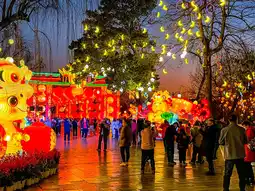 The admission fee is around 100 yuan, which is a bit expensive, but it is worth seeing the large-scale lantern sculptures unique to China and the many people making New Year's wishes.