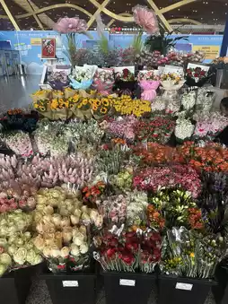 When I arrived, I was surprised to see flowers floating in the checked baggage lane. They were being sold by an unmanned person 🌹