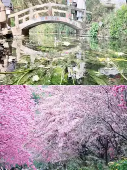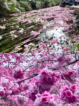 👉 Pink petals carpet the winding stream. Crouch by the shore for low-angle shots, hold your phone upside down close to the water surface for an amazing "flowing flower cascade" perspective!
