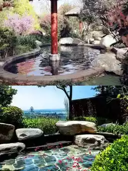 In the infinity hot spring on the top of the mountain--Qiongtai Jade Pool, embrace the town pool, the glow is reflected in the infinity hot spring, bathing in the hot spring, like bathing in the glow.