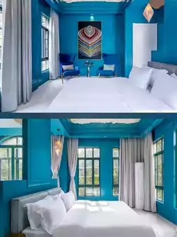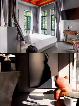 The room is specially designed with windows all around, providing excellent ventilation. The morning sunlight shining in creates a picturesque scene. Every snapshot is a masterpiece, and every corner feels full of stories. The yellow trees outside the room are enchanting.
