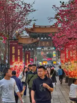 From the plaza, I wandered along 五一路, where modern shops gradually gave way to the charm of 昆明老街. The pace slowed as I entered the traditional lanes lined with red lanterns, wooden façades, and small artisan shops. The air was filled with a mix of roasting tofu and blooming flowers.