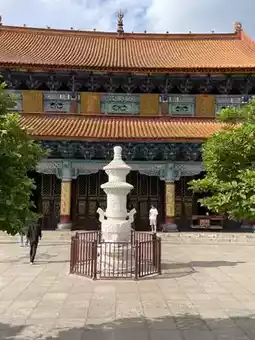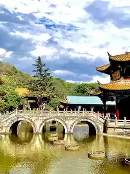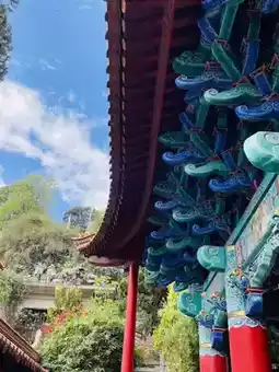 Surrounding the temple is a serene garden filled with flowers and trees, providing a peaceful atmosphere for relaxation. Behind the temple, there is a hill with stairs leading up to it. Nearby, you can also find the Kunming Zoo.