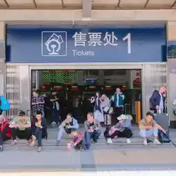 Start your journey by taking Metro Line 3 to Dongfeng Square Station, walk towards the blue line, continue to the orange line, Kunming Railway St. Exit A, walk to the train station. When you reach the train station, you have to scan your bags and body before entering every station. Once you pass through, take a photo with the important landmark, Brother Bull. Then you arrive at Kunming Railway Station.