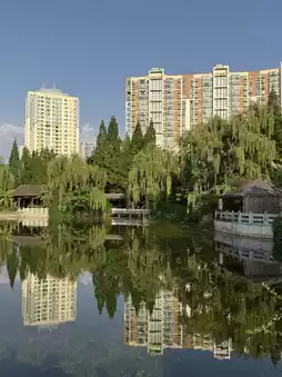 The walking paths surrounding the pond offer a relaxing stroll while watching turtles and fish swim. You'll also find locals enjoying Tai Chi or chatting, adding a warm and inviting atmosphere. It's the perfect spot for those looking to unwind during their travels.