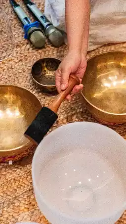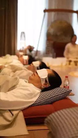 Offering three daily sessions—morning, noon, and evening—with varied healing courses like yoga, singing bowl meditation, and deep relaxation tailored to the hour!