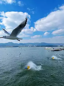 Haigeng Dam: The best place in Kunming to see gulls. The dam offers an expansive view, facing the Western Hills Scenic Area across the water. You can use a medium-telephoto lens with a large aperture to continuously shoot gulls around 8-9 AM or 4-5 PM. You can also follow the greenway to Haigeng Park and take a boat trip to admire the 'Sleeping Beauty' of the Western Hills.