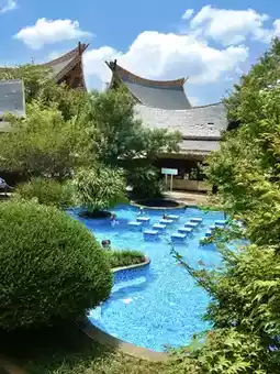 Escape the heat in a secret forest hot spring, admire the ethnic-style architecture, and let the kids go wild with the water-splashing carnival💦. The 🍄 fairy-tale-like mushroom world shines brilliantly under the lights!!