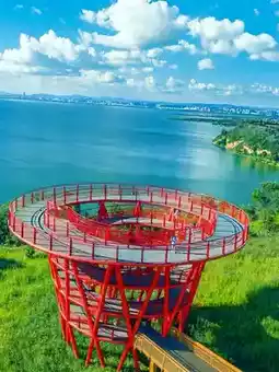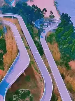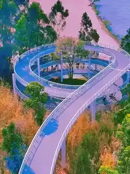 3. Mountain Bridge: A spiral red viewing platform embedded in the mountains. Cycling to the top offers a panoramic view of the magnificent blend of "mountains, water, and city." It is a must-visit spot for couples to take photos at the "Mirror of the Sky."