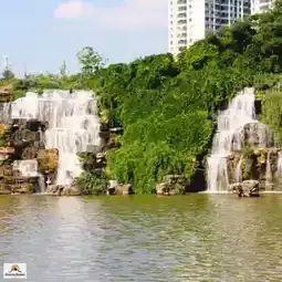 This large park in Kunming features an artificial waterfall measuring approximately 400 meters wide and over 12 meters high, creating a truly natural setting. Surrounded by lakes, walkways, and relaxation areas, it's perfect for strolling, taking photos, and relaxing with the family.