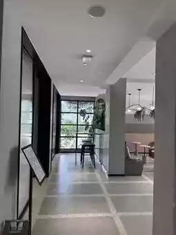 Stepping into the lobby, the gray-toned micro-cement walls come with a built-in high-end filter. The terrazzo round table paired with fresh flowers is a collision of industrial style and softness; metal-lined chairs and geometric soft furnishings make every corner look like a carefully arranged art installation, perfect for capturing fashion magazine-worthy shots.