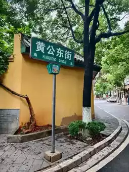 A short walk from the east gate of Cuihu Lake reveals #HuanggongEastStreet—a narrow but surprising alley. It's easy to miss, but the yellow walls and green chairs in the alley are perfect for photos. It has a fresh, artistic vibe.