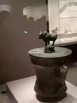 The shell container is a unique bronze artifact of the Dian Kingdom, decorated mainly with cattle, reflecting the Dian people's yearning for a better life. The shell container, a unique bronze vessel of the Dian Kingdom, is similar to a modern "piggy bank." The sea shells stored inside, as exotic treasures, once served as currency for the Dian Kingdom under specific historical contexts. The cattle image evolved from a practical lid knob to decorative art pieces, increasing in number and combining with bronze drums to form a unique artistic style. Notably, the decorative images on the shell containers are mainly cattle, and their evolution is quite ingenious. The original standing cattle may have served only as a practical "lid knob," but over time, it gradually evolved into pure decorative art.