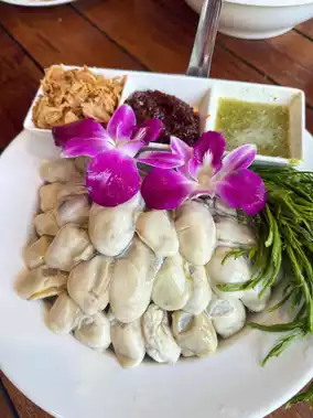 4⃣️ There are many snack stalls near the scenic area. Try the grilled rice cakes and papaya water.