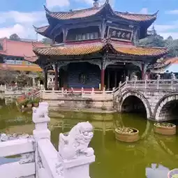 🌸 Upon entering the temple gate, you'll encounter a stone bridge spanning a pond filled with fish before entering the main hall, housing a large bronze Buddha statue from Burma. The temple also houses pagodas, pavilions, and ancient inscriptions that tell the story of the spread of Buddhism in Yunnan. It is also a venue for religious ceremonies and important festivals for Kunming residents, such as the Buddhist Lent and Makha Bucha Day.