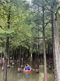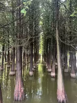 Kunming Haihong Wetland Park is located on the eastern shore of Dianchi Lake, with rows of neatly arranged water cypresses on both sides. Visitors can rent a transparent canoe to paddle through the forest. Not only is it visually stunning, but it also makes for great photos! If you're lucky, you might spot ducks swimming around, gracefully diving and surfacing, full of vitality!