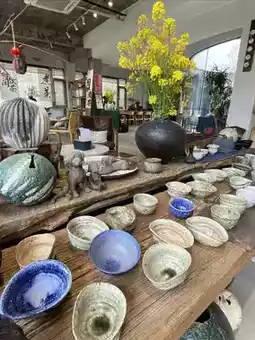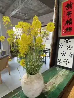 🏺 At the entrance of Tao Lu, there are some decorative pottery shards casually placed, echoing the shop's name. Entering the pottery shop, what catches the eye are the large handmade pottery vases, filled with the golden brilliance of rapeseed flowers, bringing the essence of spring right to your face. The handmade pottery, whether vases, teacups, or ornaments, all have a sense of ancient and simple artistry.