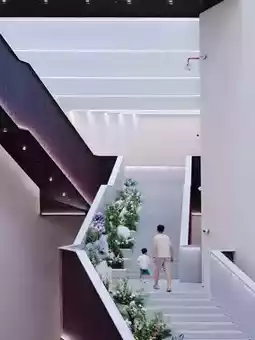 The black and white minimalist style of the atrium allows you to feel the aesthetics of 'blank space' in Eastern art as soon as you enter!