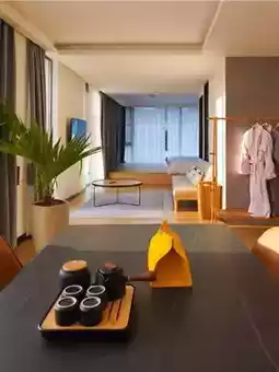 The room's independent small living room has a spacious and reasonable layout, with a geometric design style that is simple yet not monotonous. You can snuggle on the sofa to watch dramas, eat fruit, read books, like a cozy little home.