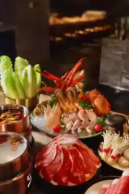 The "Warm Winter Hot Pot" buffet dinner offers a selection of fresh seasonal seafood🦪, freshly cut beef and mutton, and a variety of meat and vegetable hot pot dishes🥬, with two soup bases to choose from.