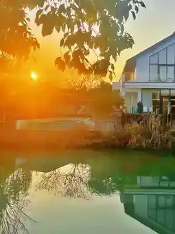 The water reflected the sunset, and with a glass of wine 🍷, the ambiance was perfect.
