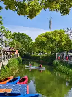✅Haitang Red Flower Family Camp: This is a larger unpowered playground with slides🛝, trampolines, climbing equipment, balance beams, etc.