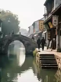 Stroll through Zhouzhuang to witness the poetic blend of morning mist, sunset, and lantern reflections, embracing the harmonious coexistence of lively charm and serene beauty in this Jiangnan water town.
