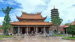 The moment I stepped through the mountain gate, I felt an illusion of "instantly arriving in Lukang"—the warm hues of the red-brick ancient houses completely washed away the usual blue-gray tones of Jiangnan. In the Heavenly King Hall, the laughing Maitreya caught my eye, but I was first drawn to the colorful Koji pottery decorations on the roof: aoyu fish, flying dragons, and fire pearls, resembling a floating Minnan lantern festival. Further in, the scale of the Tianhou Palace was unexpected; standing before the hall, I had to look up to see the caisson ceiling clearly. The overwhelming sense of awe from its sheer size was something I hadn’t even experienced at the Quanzhou Tianhou Palace. Pressing my wide-angle lens to the ground, I captured the red walls, golden tiles, and the distant nine-story pagoda in one frame—even a phone shot looked like a poster. In the afternoon, climbing the pagoda for a bird's-eye view, I realized the entire temple is nestled within an industrial park, with modern factories juxtaposed against upturned eaves, creating a cyberpunk-like surrealism. As I left, the setting sun outlined the swallowtail ridges in gold, leaving me with just one thought: Taiwanese businessmen have materialized nostalgia, and it’s truly powerful.