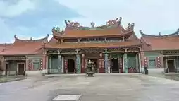 Fujian-Taiwan Heritage: Featuring red walls with swallowtail ridges, golden glazed tiles, gilded door ornaments, and Koji pottery decorations, it almost perfectly replicates the Lukang Longshan Temple.