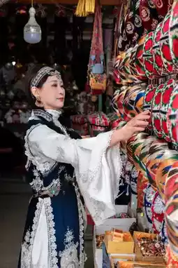 After leaving the palace, go straight to the Restan Old Street. "Restan" means "shopping mall, market" in Uyghur. Take a stroll along the way, and you will see all kinds of snacks, meals, clothing, handicrafts, etc., as well as many colorful doors, which will make your mood colorful!