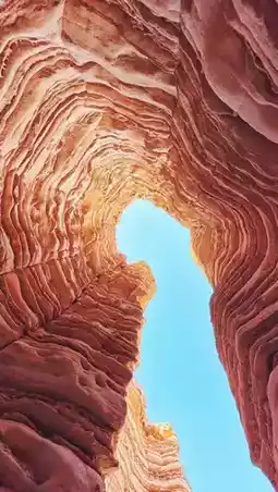 - Layers of reddish-brown sandstone are stacked upon each other, like giant waves frozen in the earth. The canyon stretches for several kilometers, with fissures, folds, and caves forming a three-dimensional maze. Every step is a "dialogue" with the earth.