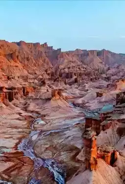 At dusk, the sunset’s afterglow drapes the Red Mountain Stone Forest in a golden veil, with the rock colors gradually shifting from fiery red to orange-red, then to rose red.