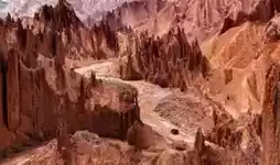 Leaving National Highway 217, turning right after the Kidik Bridge, passing through riverbeds and railway underpasses, you enter the Red Mountain Stone Forest area. It still retains its original ecological appearance—no lush vegetation, no babbling streams, only the blazing red boldly spreading between earth and sky.