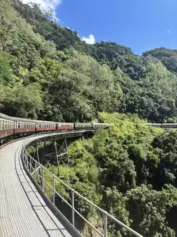 ๐ด As the train travels through lush nature, you'll be treated to stunning views of the world's oldest ๐ tropical rainforest ๐ณ, waterfalls ๐, and majestic gorges!