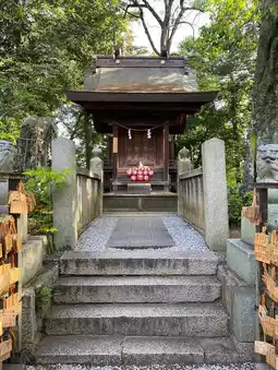 The main deity is Sugawara-no-Kami, a man of learning who is loved by all. It is a sub-shrine within the grounds of Achi Shrine.