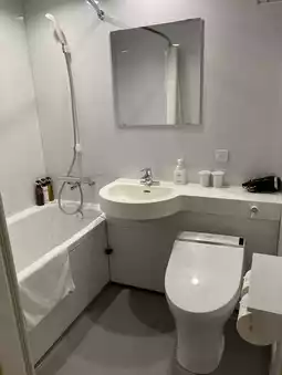 Simple room, amenities are buffet style in the lobby, no water provided. Kurashiki Bikan Historical Quarter is just a short walk away, so it is recommended for sightseeing, morning activities, and night activities.