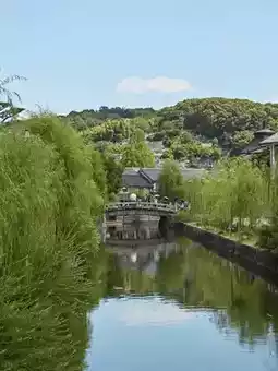 A representative tourist spot in Okayama. Enjoy the quaint scenery, including white-walled storehouses, namako walls, and rows of willow trees.