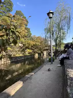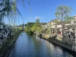 Kurashiki is a very comfortable place located 30 minutes away from Okayama City by car. The canal is lined with swaying willow trees. You can take a boat and drift in the wind while looking at the scenery on both sides. It's so cool😊