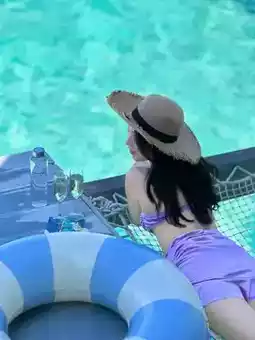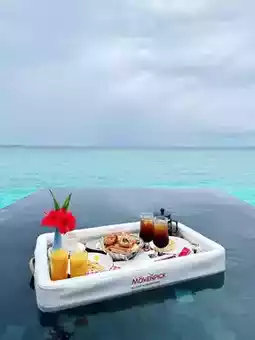 There is a glass floor where you can stand directly on it to watch the fish. There is also an infinity pool and net beds. Any photo you take will look beautiful! 🍹Because it was a honeymoon, we also gave them a floating breakfast!