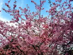 The location of Ichibon Sakura is relatively remote. From Kurume Station on the Nishitetsu Tenjin Omuta Line, you can take Nishitetsu Bus No. 25 and get off at Nakazumi. From there, it's about a 20-minute walk. Another cherry blossom viewing spot, "Kio Park," is also within a 20-minute walking distance. Situated near Mount Mino, this park features rare Kawazu cherry blossoms, along with Yoshino cherry blossoms, weeping cherry blossoms, camellias, and plum blossoms.