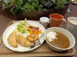 The buffet features freshly baked bread, hotel-made curry, and delicious Japanese and Western dishes.