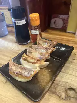 - Menshi's dumplings are not to be missed, crispy crust, full filling, five pieces a portion, the price is affordable 400 yen.
