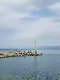 We strolled along the promenade, with the deep blue sea on one side and various artistic shops on the other. It might not be the peak season for European and American vacations, so there weren't many people around. Leisurely listening to the waves, watching people enjoy their fishing time in a lazy manner, the reflection of the yellow lighthouse in the sea, everything was beautiful and quiet, with an atmosphere of peaceful times.