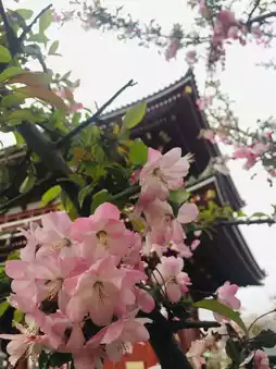 Because you can see pink flowers contrasting with the ancient architecture. Walk to see the cherry blossoms and worship the Buddha
